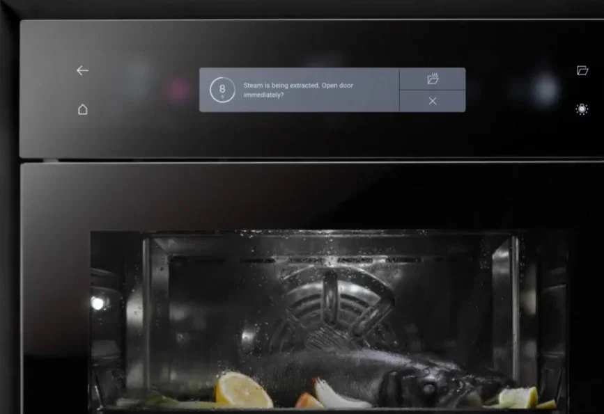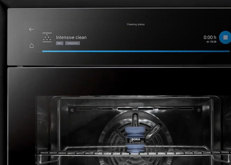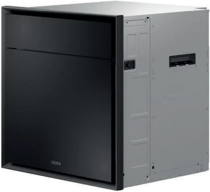 Удобство автоматизации обеспечивает программирование рецептов в память прибора и возможность синхронизации с приложением BORA JOY по Wi‑Fi. Четырёхточечный термощуп даёт точную индикацию внутренней температуры, а на дисплее отображается остаточное время работы. Система редукции пара минимизирует запотевание фасада кухонной мебели, а автоматическое отключение подачи пара при открытой дверце повышает безопасность.