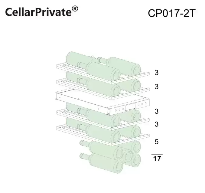 Винный шкаф CellarPrivate CP017-2T — компактная и стильная встраиваемая модель, созданная для монтажа под столешницу или для установки отдельно. Его строгий металлический корпус гармонично впишется в любую кухонную или барную зону. Стеклопакет с тонировкой защищает бутылки от ультрафиолета, а накладная ручка и возможность перенавешивания двери обеспечивают удобство размещения в любом интерьере. Габариты 82×29.5×57.5 см и ниша для встраивания 82.5×30.5×61 см делают устройство подходящим для компактных пространств.