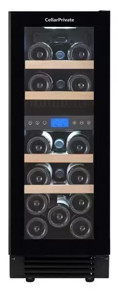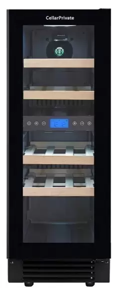 Винный шкаф CellarPrivate CP017-2TBH — элегантный встроенный прибор в черном корпусе, созданный для аккуратного хранения и оптимального созревания бутылок. Его компактные габариты 82×29.5×57.5 см позволяют разместить агрегат под столешницей или использовать отдельно. Для встраивания подготовлена ниша 82.5×30.5×61 см, что упрощает монтаж и обеспечивает аккуратный внешний вид кухни.
