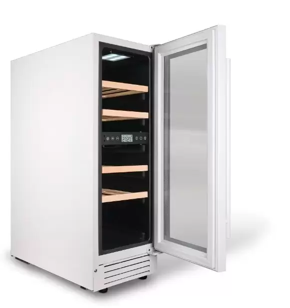 Устройство оснащено компрессорной системой охлаждения и двумя полностью независимыми температурными зонами. Верхняя область предназначена для белых и легких вин при 5-12 °C, нижняя — для красных при 12-20 °C. Сенсорное управление с цифровым дисплеем упрощает точную настройку показателей и дает быстрый доступ к изменениям. Автоматическое размораживание сокращает обслуживание и помогает поддерживать постоянную влажность и стабильный режим.
