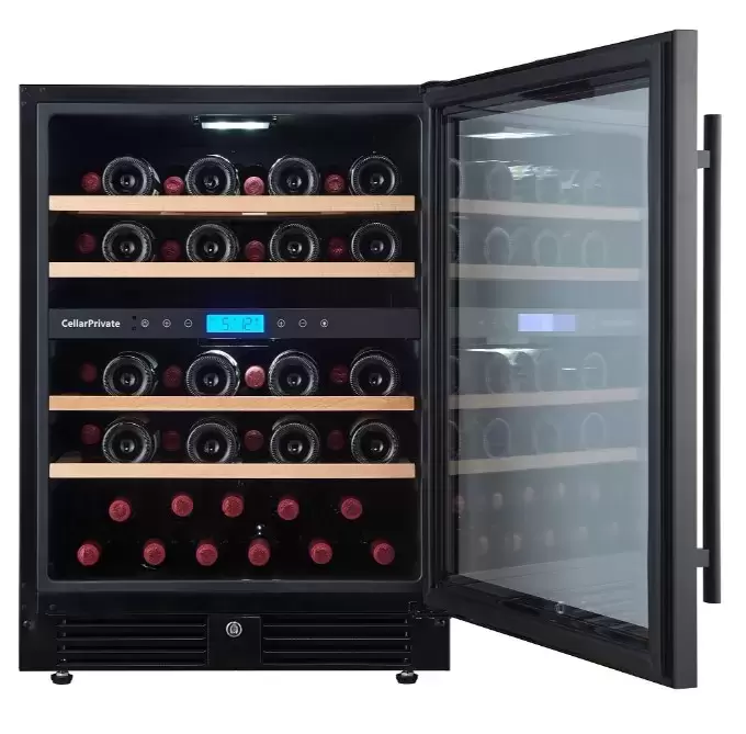 Винный холодильник CellarPrivate CP043-2TB имеет две температурные зоны, в которых одновременно можно хранить разные сорта алкоголя и выставлять разные сочетания настроек. Он встраивается в нишу, что удобно, если у вас ограничен метраж помещения. Благодаря компактным размерам данная модель — отличный выбор для офиса, гостиничного номера. Количество бутылок, которое можно разместить с учетом полной комплектации и из расчета объема бутылки 0,75 л, — 43 шт.