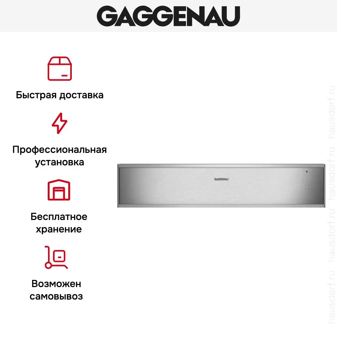 Модель Gaggenau WS 461-110 предназначена для подогрева посуды (необходимо при подаче сложных блюд или подготовке торжества), а также обработки продуктов. Один из основных вариантов использования — прогрев тарелок, который предотвращает изменения вкуса или текстуры ресторанных порций. Также с помощью этого прибора можно поднять температуру на поверхности чашек, чтобы свежесваренный кофе полностью сохранил свои качества. Общее количество режимов работы — 4 шт. Вы можете самостоятельно регулировать температуру в зависимости от своей цели.