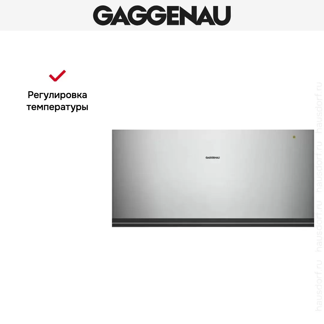 Модель Gaggenau WSP 222-110 предназначена для подогрева посуды (необходимо при подаче сложных блюд или подготовке торжества), а также обработки продуктов. Один из основных вариантов использования — прогрев тарелок, который предотвращает изменения вкуса или текстуры ресторанных порций. Также с помощью этого прибора можно поднять температуру на поверхности чашек, чтобы свежесваренный кофе полностью сохранил свои качества. Общее количество режимов работы — 4 шт. Вы можете самостоятельно регулировать температуру в зависимости от своей цели.