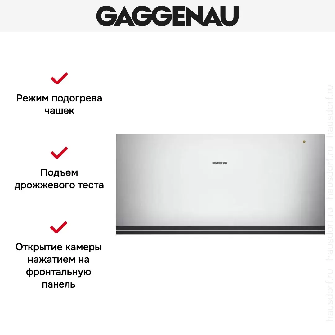 Модель Gaggenau WSP 222-130 предназначена для подогрева посуды (необходимо при подаче сложных блюд или подготовке торжества), а также обработки продуктов. Один из основных вариантов использования — прогрев тарелок, который предотвращает изменения вкуса или текстуры ресторанных порций. Также с помощью этого прибора можно поднять температуру на поверхности чашек, чтобы свежесваренный кофе полностью сохранил свои качества. Общее количество режимов работы — 4 шт. Вы можете самостоятельно регулировать температуру в зависимости от своей цели.