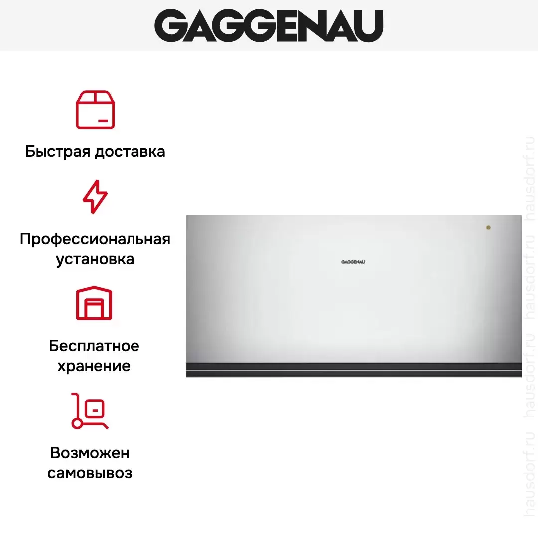 Ящик выдвигается полностью, что дает максимальный доступ к камере, облегчает загрузку и выгрузку посуды. Дверца открывается нажатием на специальную область фронтальной панели — таким образом модель Гаггенау отлично вписывается даже в современный бесшовный дизайн интерьера. Основной материал внутренней поверхности — сталь.