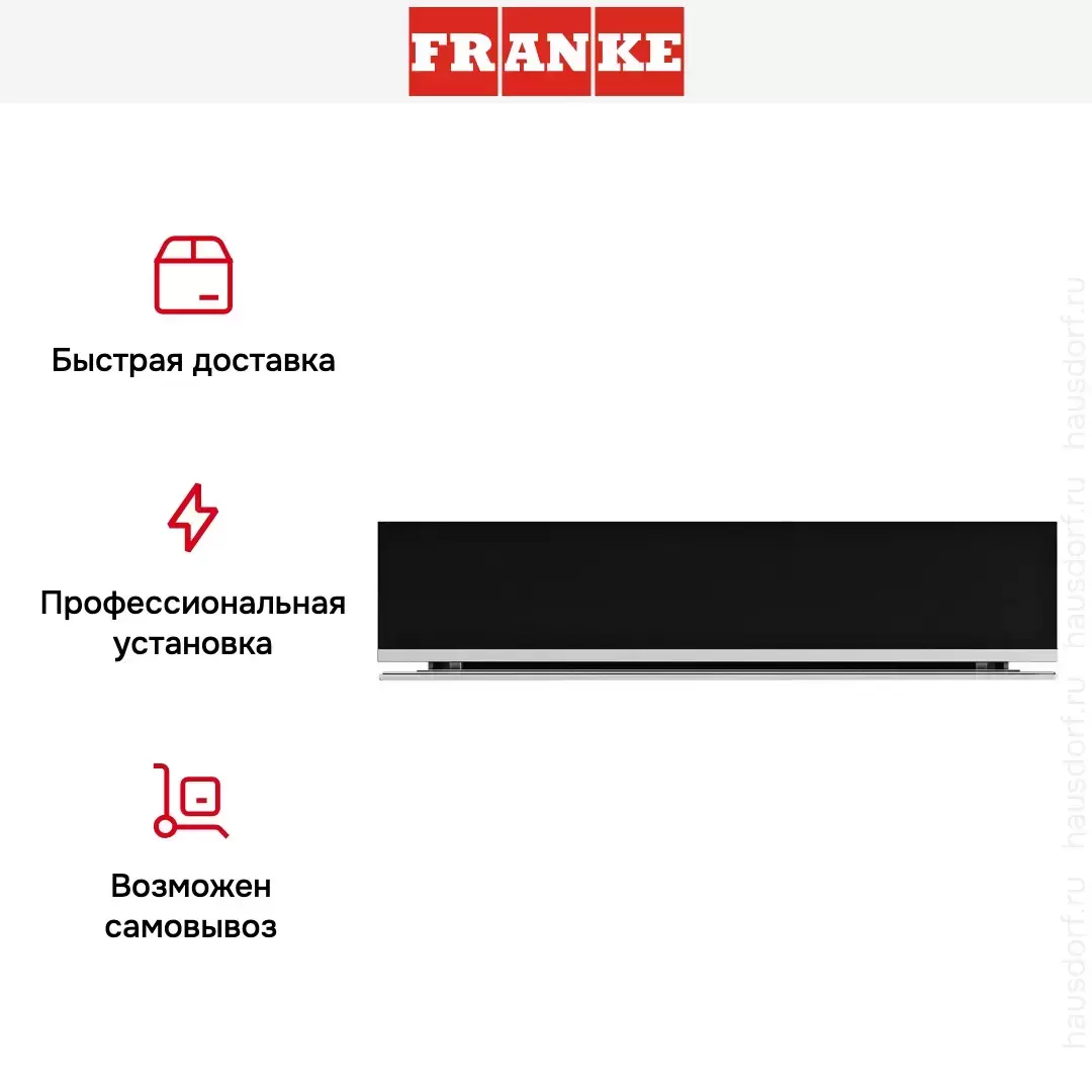 Дверца открывается нажатием на специальную область фронтальной панели — таким образом модель Франке отлично вписывается даже в современный бесшовный дизайн интерьера. Телескопические направляющие, идущие в комплекте, повышают комфорт и безопасность использования.
