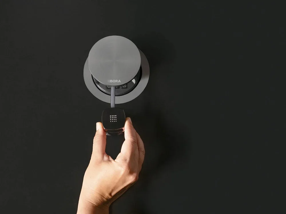 Встраиваемый вакууматор BORA QVacSS отличается компактной конструкцией и аккуратным лицевым оформлением из нержавеющей стали. Устройство имеет габариты 14.2×23.9×12.4 см, что позволяет расположить его в небольшой кухонной нише или столешнице без лишней визуальной нагрузки. Для встраивания подойдет столешница толщиной не менее 10 мм, а монтаж возможен как над рабочей поверхностью, так и вровень с ней; блок выдвигается вверх для доступа. Нержавеющая сталь на фронтальной панели не только эстетична, но и стойка к пятнам, царапинам и легко очищается от пищевых загрязнений.