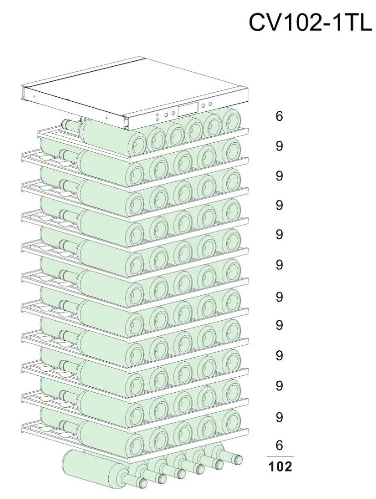 | Вместимость (бутылки 0.75 л) | 102 | |