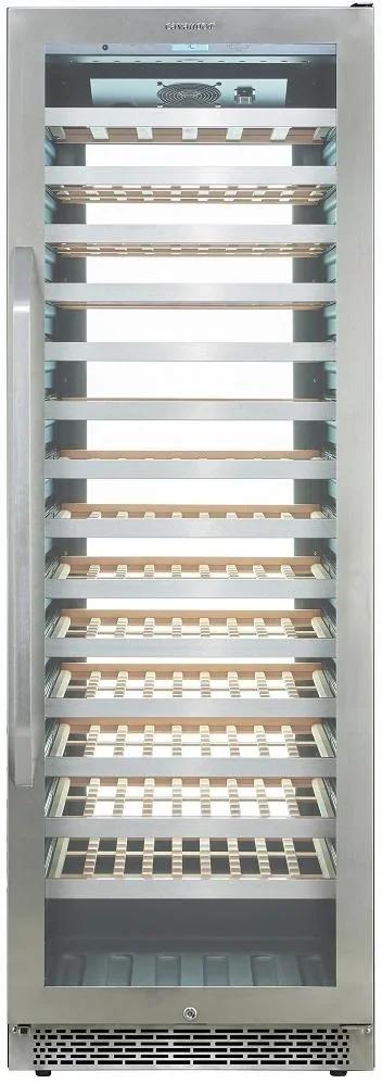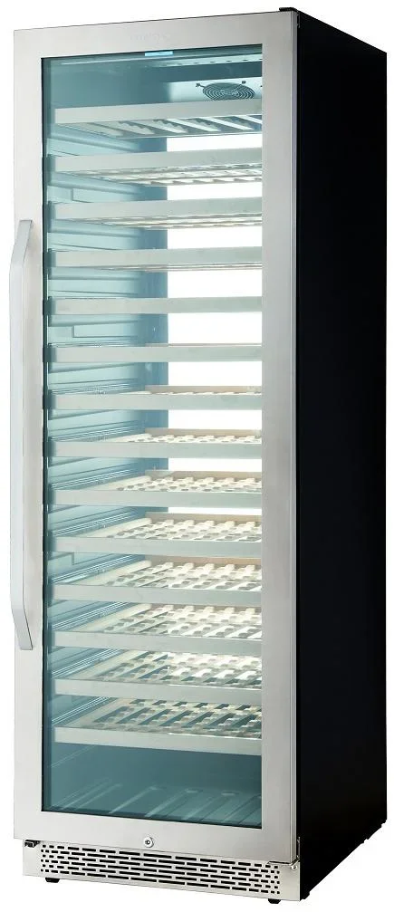 Дизайн сочетает строгие линии и премиальные материалы, что делает агрегат уместным как в современном интерьере, так и в классическом. Накладная ручка удобна для повседневного использования и не нарушает чистоту фасада. Двойное стекло с UV-защитой снижает воздействие солнечных лучей, что важно для сохранения вкуса и аромата вина. Черный металлический корпус подчеркивает респектабельность и стойкость к механическим воздействиям.