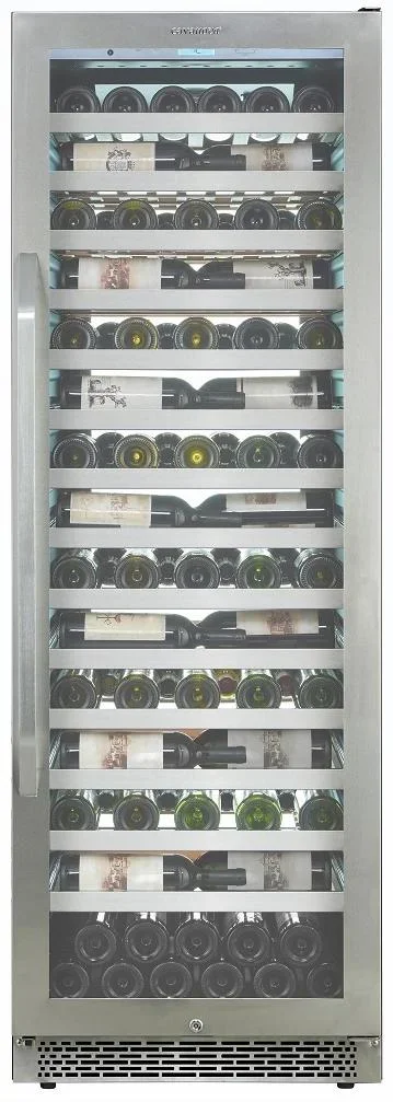 Винный шкаф Cavanova CV135-1TL представляет собой стильное встраиваемое решение для хранения коллекции напитков, выполненное в серебристом цвете с черным корпусом и стальной рамой дверцы. Его габариты 176×59.5×67.5 см позволяют аккуратно интегрировать прибор в кухонный гарнитур или барную нишу. Однодверная конструкция с правым дверным упором и двойным стеклопакетом сохраняет эстетичный внешний вид и обеспечивает защиту содержимого.