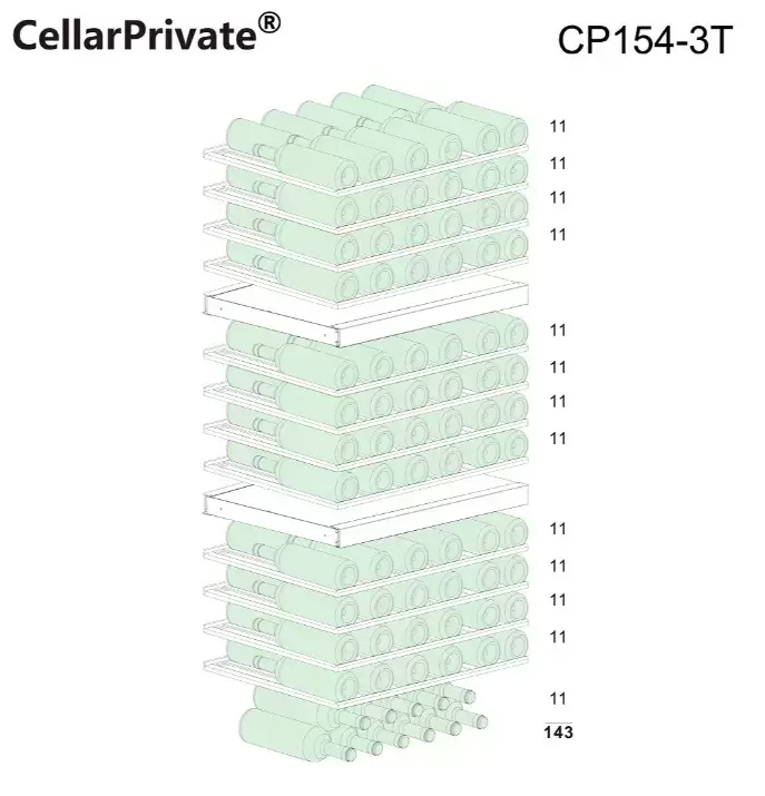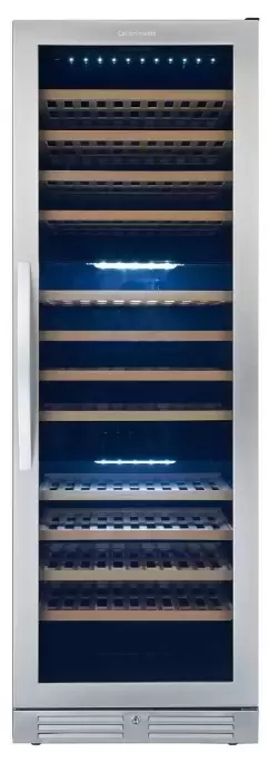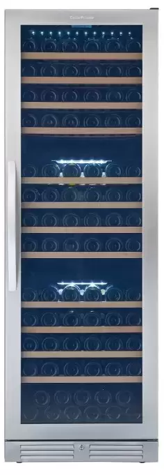 Винный холодильник CellarPrivate CP154-3T имеет несколько температурных зон, в которых одновременно можно хранить разные сорта алкоголя и выставлять разные сочетания настроек. Он встраивается в нишу, что удобно, если у вас ограничен метраж помещения. Количество бутылок, которое можно разместить с учетом полной комплектации и из расчета объема бутылки 0,75 л, — 143 шт.