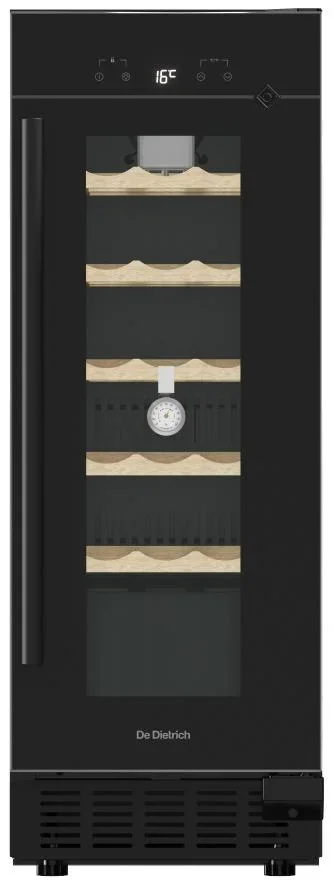 Встраиваемый винный шкаф De Dietrich DUW20FB выполнен в элегантном стиле Philharmonie и станет украшением любой кухни или винного уголка. Внешняя часть в чёрной рамке со стеклопакетом подчёркивает статус и аккуратно интегрируется в мебельный ряд. Накладная ручка и правый дверной упор обеспечивают удобство открывания, а тонированное стекло с UV‑защитой защищает напитки от губительного света. Благодаря компактным габаритам 82×29.5×57 см прибор легко разместить в нише 82.5×30×57.5 см, а регулируемые ножки упростят финальную подгонку по уровню.