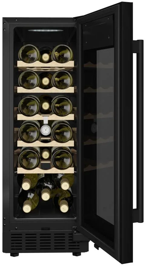 Внутреннее пространство рассчитано на 20 бутылок по 0,75 л и общий объём 56 л, что делает шкаф идеальным для небольшой коллекции. Пять деревянных полок мягко поддерживают бутылки и препятствуют скольжению, а натуральный материал минимизирует колебания температуры и вредное воздействие вибраций. Компрессорное охлаждение с одним компрессором обеспечивает стабильный температурный режим в диапазоне 5-20 °C, а автоматический контроль влажности позволяет сохранить пробки в оптимальном состоянии.