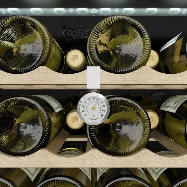 Управление сенсорное с цифровым дисплеем и цифровым термометром обеспечивает точную настройку и наглядность показаний. Звуковая индикация повышения температуры и сигналы о неисправностях предупреждают о рисках заблаговременно. Внутреннее светодиодное освещение выгодно подчёркивает содержимое и не нагревает бутылки. Устройство оснащено угольным фильтром и автоматическим контролем влажности для сохранения пробок и аромата напитков.