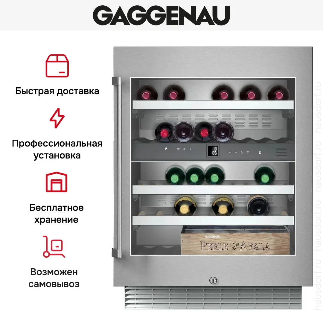 Встраиваемый винный шкаф Gaggenau RW404262 — это сочетание современного дизайна и передовых технологий хранения коллекционных напитков. Модель выполнена в элегантном исполнении из нержавеющей стали, что придаёт интерьеру кухни или гостиной особую утончённость. Компактные размеры (81,6—86,6х59,7х57 см), а также возможность установки в нишу с высотой от 82 до 87 см и шириной 60 см позволяют гармонично интегрировать шкаф в мебельный ансамбль. Стальная рамка стеклянной двери с защитой от ультрафиолетового излучения и функцией автоматического затемнения при закрытии надёжно оберегает содержимое от негативного воздействия света. Прозрачная дверца открывается на угол 115°, а наличие доводчика обеспечивает плавное и мягкое закрытие, что особенно удобно при ежедневном использовании.
