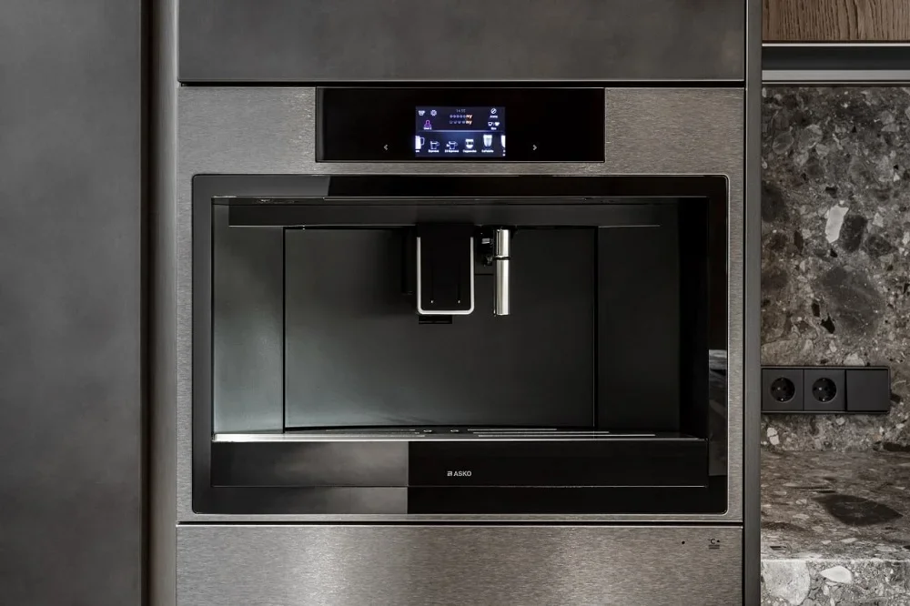 Встраиваемая модель стандартной ширины 60 см имеет фасад цвета Black Steel с объемной светодиодной подсветкой. Регулировка крепости напитков, размера чашки и степени помола позволит каждому пользователю получить свой идеальный напиток. Предусмотрены специальные программы приготовления капучино, латте, латте макиато, лунго, эспрессо. Для вашего комфорта напиток разливается в подогретые чашки: их можно разместить на специальной встроенной полке. Функция ожидания с минимальным потреблением электроэнергии позволяет максимально быстро начать приготовление. Машина оснащена двумя нагревательными элементами: получение пара займет всего несколько минут. Выбрать параметры приготовления кофе на электронной панели управления поможет цветной сенсорный TFT-дисплей с цветовой и языковой настройкой отображения. Полностью раскрыть вкус и запах кофе позволит система предварительной варки. Специальная система предупреждения оповещает о необходимости очистки. Электронная система управления позволяет создавать профили пользователя, запоминая индивидуальные предпочтения. Возможно также создание собственных рецептов и их сохранение в памяти.