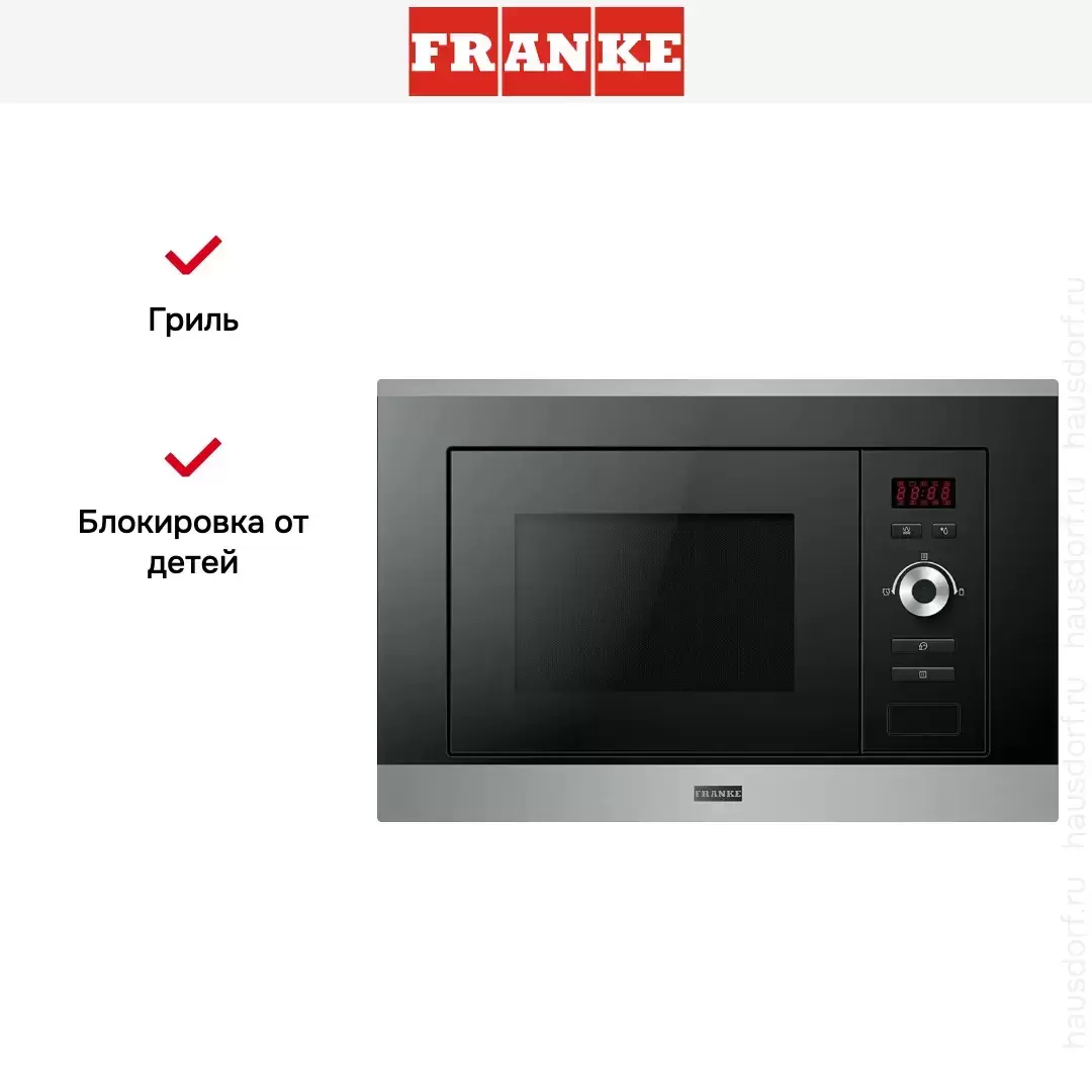 Встраиваемая микроволновая печь Franke Plus FMW 20 SMP G XS — прекрасное дополнение к уже имеющейся кухонной технике. Ее можно установить в колонну с духовым шкафом, пароваркой, кофемашиной. Цвет этой модели: черный/нержавеющая сталь. Дизайн-линейка: Smart, комбинируйте ее с другими приборами этой же серии.