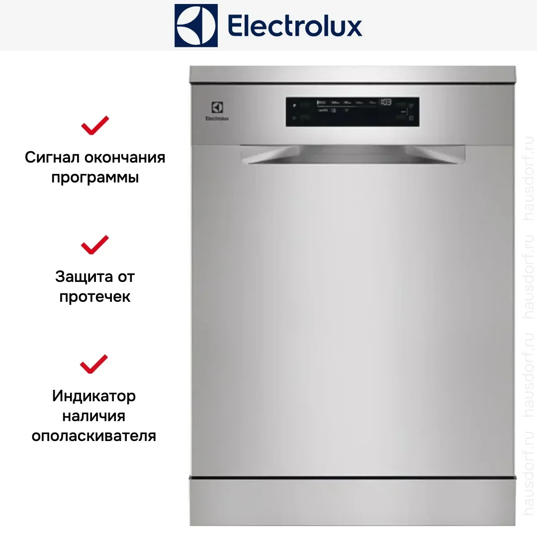Посудомоечная машина Electrolux ESM48310SX представляет собой стильный и функциональный прибор для современной кухни. Корпус из нержавеющей стали придаёт строгий и благородный вид, а ровная фронтальная панель хорошо сочетается с любыми фасадами. Габариты 85×59.8×62.2 см делают её полноразмерной, но уверенно вписывающейся в стандартное кухонное пространство. Управление выполнено электронным образом через открытую панель с цифровым дисплеем, что обеспечивает простоту настройки и наглядность. Вес устройства 44.7 кг ощутим, но указывает на добротную конструкцию и качественные материалы.