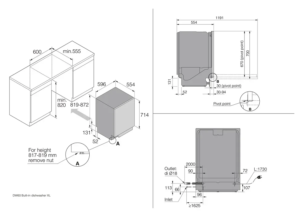 Встраиваемая посудомоечная машина ASKO DFI544H-1 сочетает аккуратный внешний вид и продуманную функциональность, легко встраивается под фасад кухни и занимает стандартизированную нишу. Модель полностью интегрируется, поэтому лицевая панель подбирается под ваш гарнитур, а панель управления выполнена из нержавеющей стали и остаётся скрытой за дверцей. Корпус рассчитан на стандартную нишу 82×60×56 см, а регулируемая по высоте передняя часть позволяет подстроить прибор под любой цоколь.