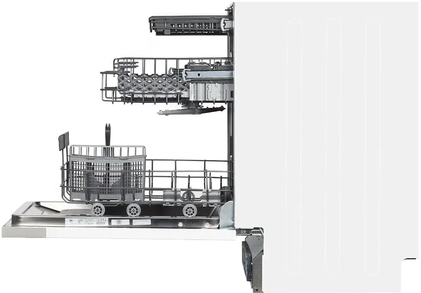 Габариты корпуса — 87 × 45 × 55 см — позволяют легко интегрировать устройство даже в ограниченную нишу, рекомендуемые параметры которой составляют 87,4 × 45 × 57 см. Такая точность обеспечивает плотное прилегание, устойчивость при работе и беспрепятственный доступ к дверце, глубина которой в открытом состоянии достигает 116 см. Продуманная эргономика корзин и регулируемые элементы внутреннего пространства позволяют разместить посуду любого формата — от высоких бокалов до глубоких тарелок и сковородок.