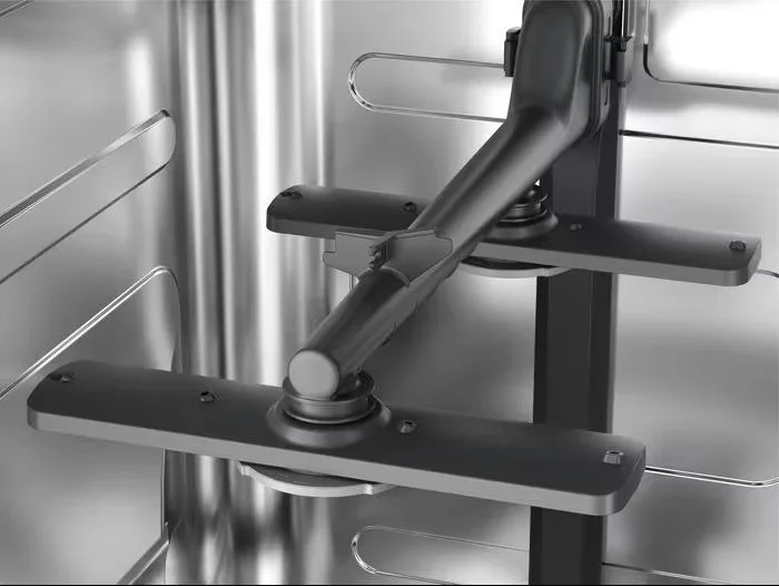 Система сушки AirDry Technology раскрывает дверцу в конце программы, что позволяет холодному воздуху естественным образом завершить процесс сушки. Такой подход повышает эффективность удаления влаги и сокращает зависящее от нагрева энергопотребление. Для бережного обращения с деликатной посудой предусмотрены держатели SoftSpikes и полка MaxiFlex для столовых приборов, которые упрощают размещение крупных ложек и вилок. Внутренние корзины гибко конфигурируются, поэтому легко разместить как большие кастрюли, так и хрупкие бокалы.
