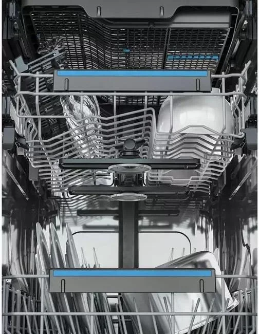 Встраиваемая модель Электролюкс отлично впишется в любой интерьер, главное — правильно выбрать место, чтобы подвести коммуникации. Устанавливается в нишу целиком, полностью закрывается декоративной панелью. Обратите внимание: в комплекте не идет фасад, его необходимо установить самостоятельно. Имеет уменьшенную ширину — благодаря этому поместится даже на очень маленькой кухне. В камеру можно загрузить ограниченное число комплектов: 10 шт. Комплектом считается набор посуды на одного человека, который нужен для полноценного приема пищи: глубокая и плоская тарелки, тарелка для салата, блюдце под чашку, сама чашка, ложка и вилка.