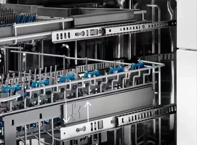 Внешний и внутренний дизайн ориентированы на удобство повседневной эксплуатации. Панель управления выполнена в электронном Touch Control формате, что обеспечивает точное и интуитивное управление программами касанием. Внутренняя подсветка делает загрузку и разгрузку удобной даже в условиях слабого освещения. Корзины и направляющие продуманы до мелочей: держатели SoftSpikes надёжно фиксируют тарелки, а резиновые зажимы SoftGrip защищают бокалы от скольжения и появления микротрещин.