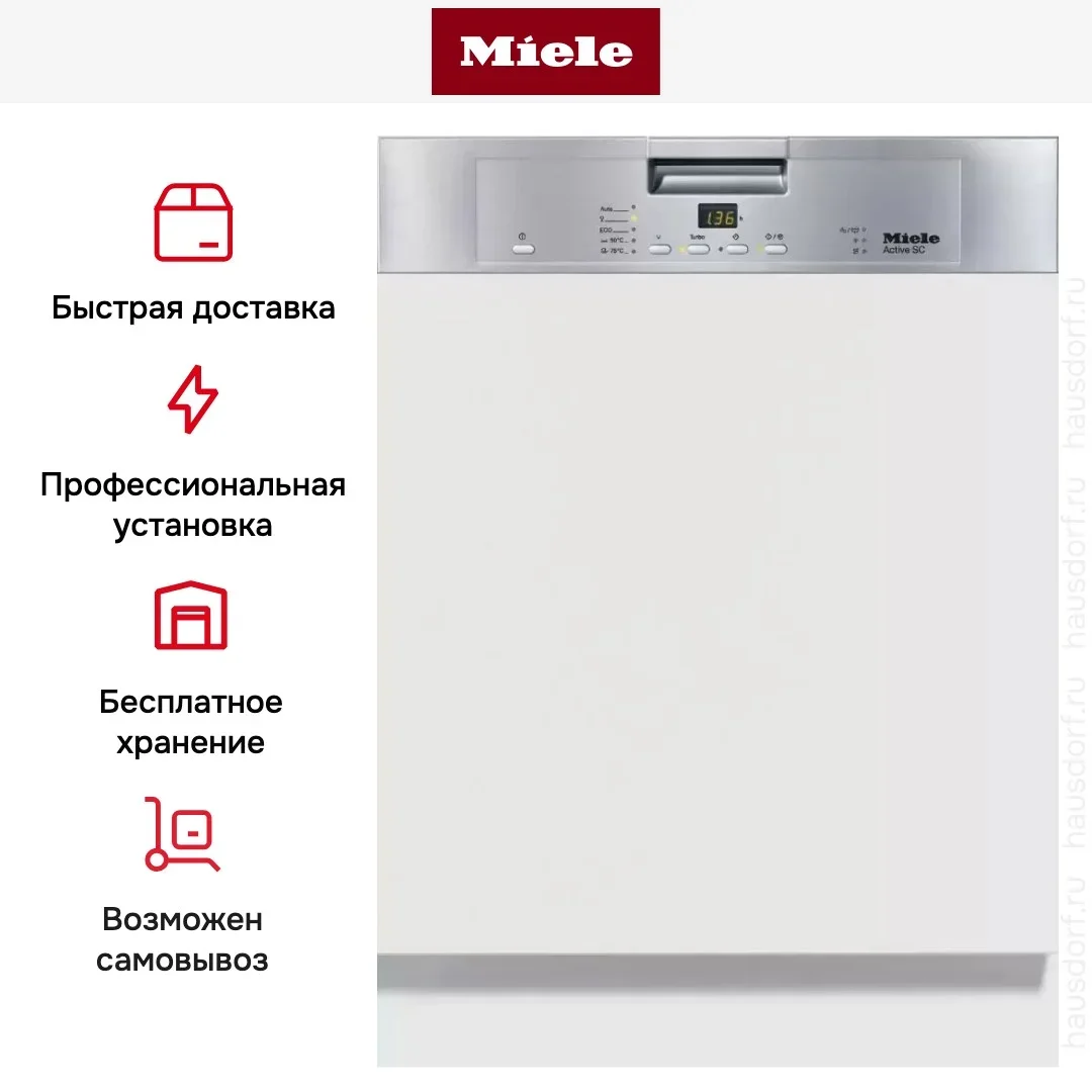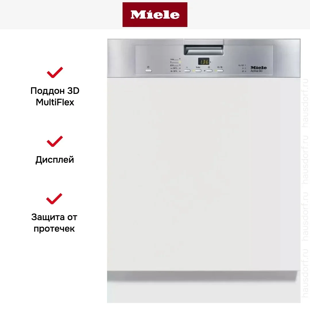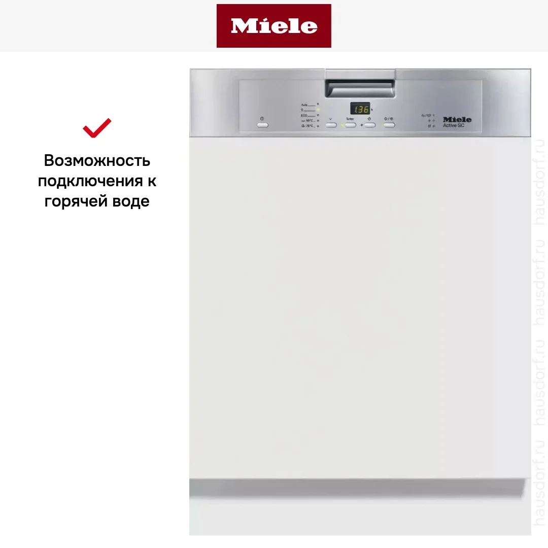 Посудомоечная машина Miele с пятью программами мойки и загрузкой на 14 комплектов посуды. Предусмотрена система мойки свежей водой, сушка Turbothermic. Стильная открытая панель управления с информативным дисплеем.