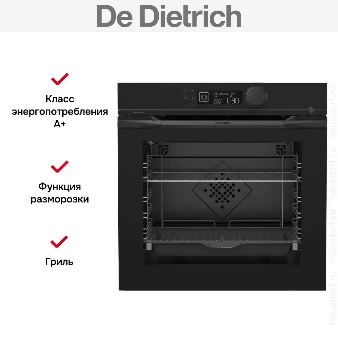 Количество режимов работы в духовом шкафу Де Дитрих: 14. В число доступных программ входят: классический нагрев, гриль для создания хрустящей корочки, сушка для овощей и фруктов, и другие. Помимо основных программ воспользуйтесь специальными возможностями этого прибора: размораживанием продуктов, чтобы сократить время на подготовку; опцией автоматического поднятия теста; и другими. Тип гриля в этой модели — электрический.