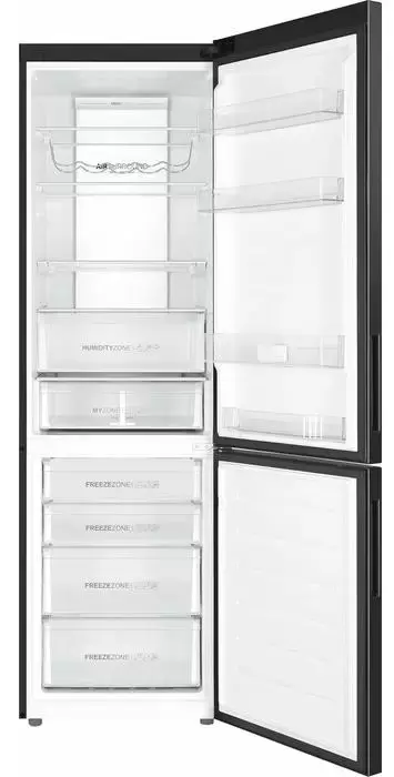 Специальная зона свежести предназначена для правильного и более длительного хранения овощей, фруктов, зелени. В ней поддерживается околонулевая температура, поэтому продукты не перемораживаются и не пересыхают. Система охлаждения этого холодильника — циркуляционная .