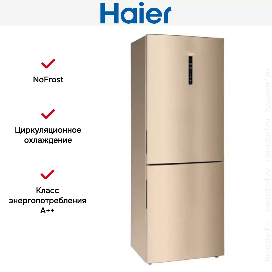 Haier C4F744CGG — отдельностоящий холодильник в золотистом корпусе. Общий объем его составляет 439 литров. Климатический класс SN-ST гарантирует надежную работу при наружных температурах от +10°C до +43°C. Инверторный компрессор обеспечивает минимальный уровень шума 40 дБ. Модель характеризуется классом энергоэффективности A++, что гарантирует экономичную работу. Встроенная LED-подсветка служит наилучшему обзору внутреннего пространства. Для комфортной эксплуатации предусмотрена система NoFrost. Она не только препятствует образованию инея и наледи, но и обеспечивает равномерное распределение холода по всему объему, а также замедляет размножение бактерий. Благодаря этому продукты хранятся дольше и не теряют полезных свойств. Имеется специальный отсек My Zone, температуру в котором можно устанавливать независимо от окружающего пространства. Это позволяет создать оптимальные условия для свежего мяса или рыбы. Для поддержания оптимального уровня влажности 90% используется мембранная технология HCS.