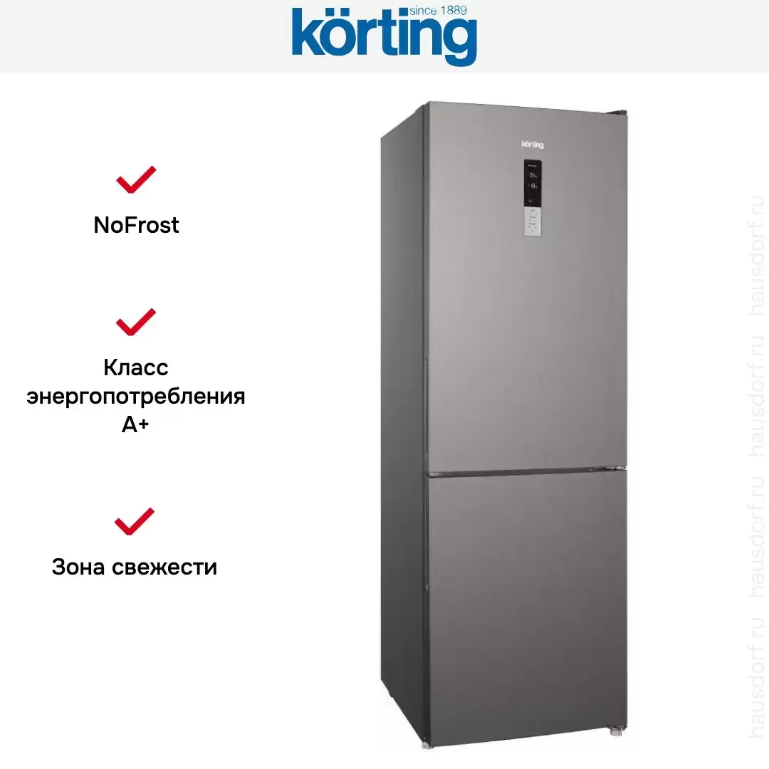 Холодильник Korting KNFC 61869 X — замечательный выбор для всех, кто нуждается в надежном и современном приборе, чтобы обустроить кухню по последнему слову техники.