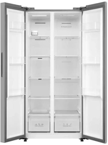 Данная модель — отдельностоящая, поэтому нужно тщательно подобрать место для ее размещения. Холодильник Side-by-Side с необычным расположением камер — сбоку друг от друга — позволяет увеличить объем продуктов для хранения. Такой вариант подходит обладателям просторной кухни, большим семьям, людям, которые запасают продукты и готовят впрок. Количество камер: 2.