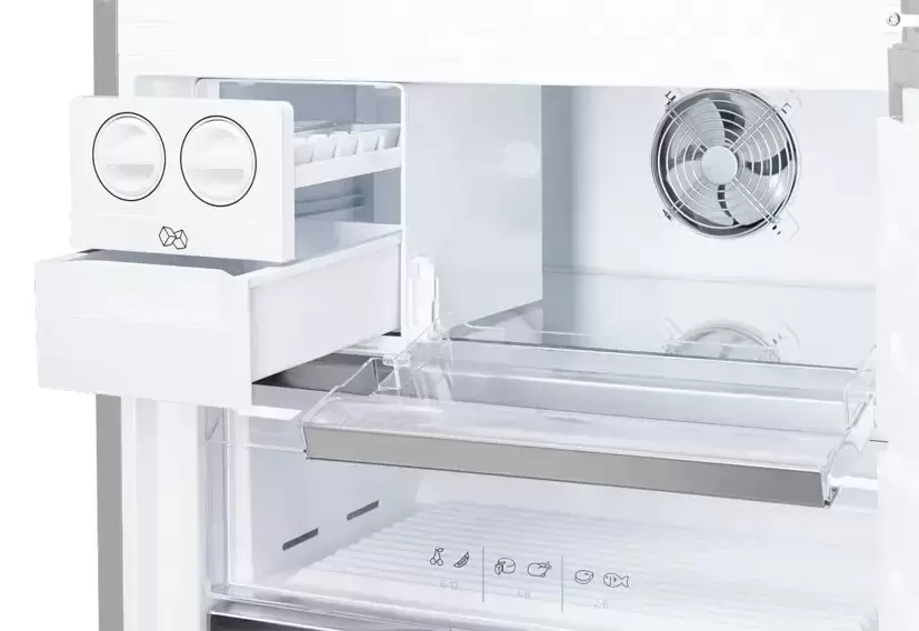 Специальная зона свежести предназначена для правильного и более длительного хранения овощей, фруктов, зелени. В ней поддерживается околонулевая температура, поэтому продукты не перемораживаются и не пересыхают. Ледогенератор в морозильной камере позволит быстро подготовить напитки к вечеринке или утолить жажду в жаркий летний день. Тип устройства: механический. Система охлаждения этого холодильника — циркуляционная .