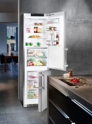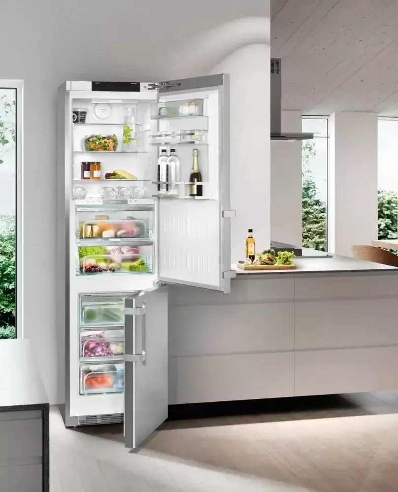Liebherr CBNies 4878 — отдельностоящий двухкамерный холодильник. Система доводчиков двери SoftSystem обеспечивает мягкое закрывание. Оснащен зоной свежести BioFresh с двумя ящиками на телескопических направляющих, где созданы оптимальные условия для долгого хранения овощей, фруктов, рыбы и мяса. На покрытии поверхности SmartSteel не остаются царапины и отпечатки пальцев.