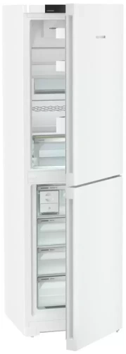 Холодильник Liebherr CNd 5724 Plus NoFrost в белом корпусе — классическая комбинация из холодильной и морозильной камеры. Устройство обеспечивает бережное и при этом быстрое охлаждение и замораживание продуктов. Прибор отличает большая минусовая камера — на четыре ящика, что отличается от стандартных вариантов, где используется три бокса. Верхнее отделение располагает стеклянными полочками, металлическим держателем для бутылок, а также организованным местом для хранения на двери. Управление — электронное, располагается в удобном для пользователя месте. При необходимости можно заблокировать кнопки от случайного нажатия или игр детей с электрооборудованием. Преимуществом холодильника Либхер CNd 5724 также является автоматическое размораживание морозильной камеры, так как прибор оснащен технологией НоуФрост.