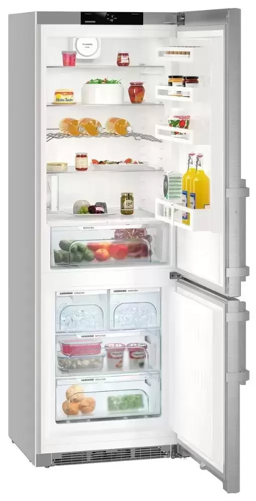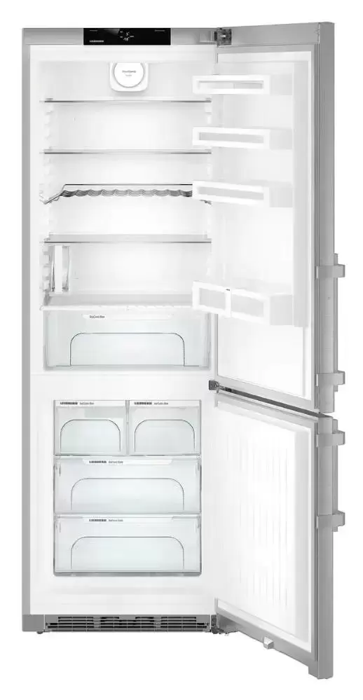 Liebherr CNef 5745 — двухкамерный холодильник с зоной BioCool, оснащенной регулятором уровня влажности, где можно дольше хранить фрукты и овощи. Имеет ледогенератор IceMaker, способный производить до 1.2 кг льда в сутки и хранить 2.2 кг. На поверхности прибора SmartSteel не остается царапин и отпечатков пальцев.