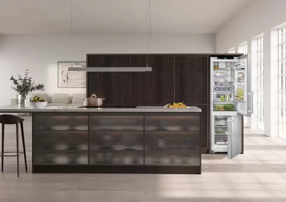 Имеется возможность установки модуля SmartDeviceBox для удаленного управления устройством с мобильного телефона. Панель управления представляет собой сенсорный и свайповый экран, позволяющий выбирать параметры работы одним движением. Покрытие Antifingerprint защищает фасад холодильника от отпечатков пальцев. Сухая задняя стенка изготавливается из нержавеющей стали. Для получения кубиков льда предназначается автоматический ледогенератор IceMaker.