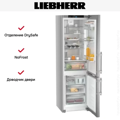 Liebherr CNsdd 5763 — отдельно стоящий двухкамерный холодильник из серии BluPerformance с низким потреблением электроэнергии и уровнем шума 36 дБ. Система размораживания NoFrost в морозильной камере предотвращает обледенение поверхности и облегчает очистку. Два контура охлаждения DuoCooling обеспечивают независимую регулировку температуры.