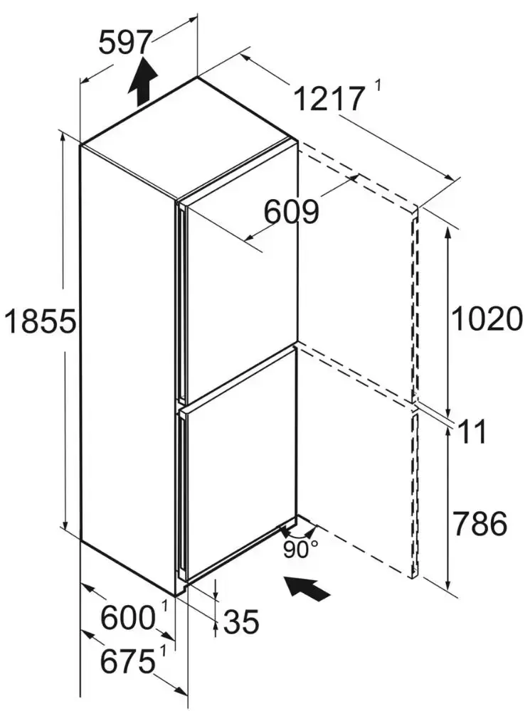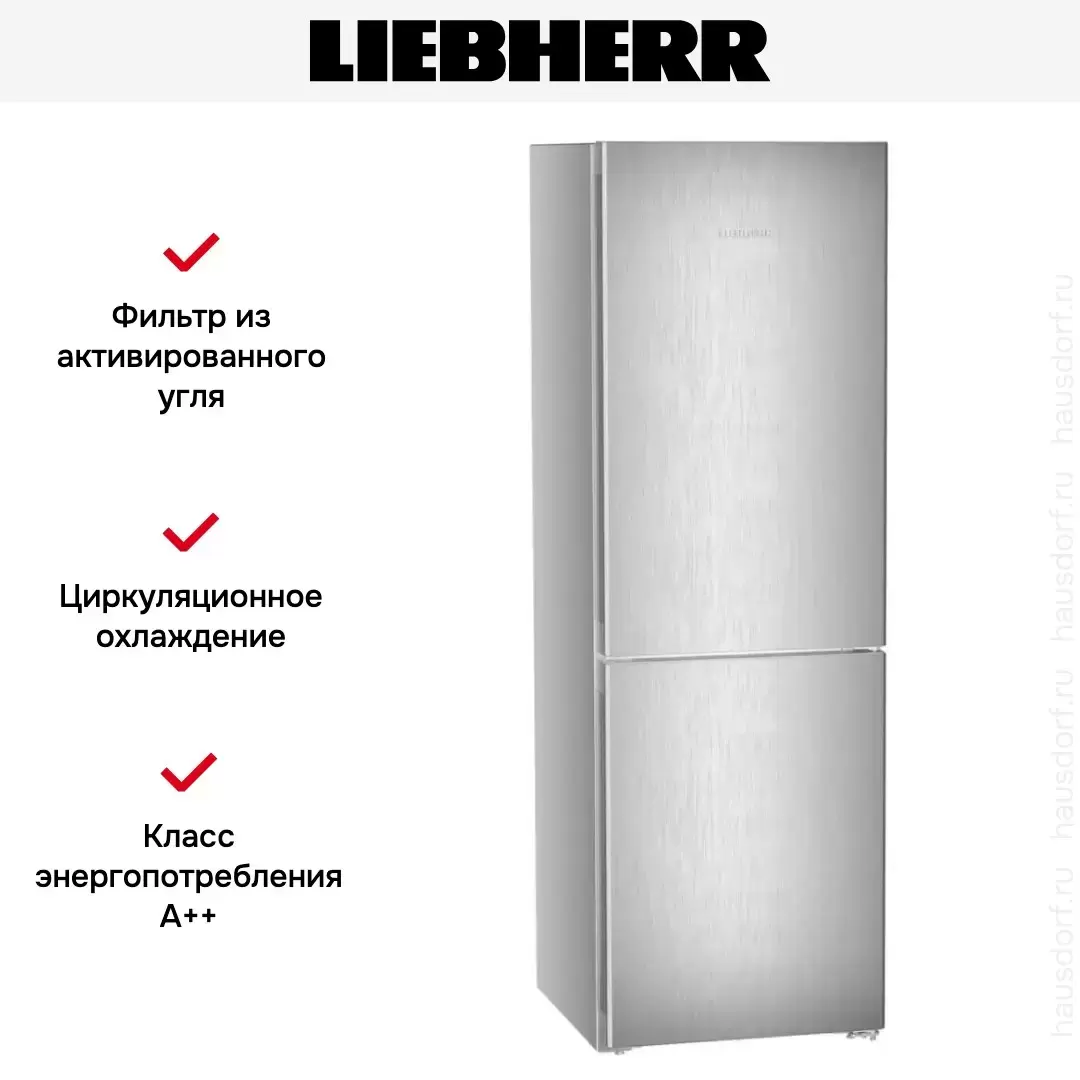 Liebherr CNsfd 5203 Pure NoFrost — большой холодильник европейского типа в серебристом корпусе в интегрированной ручкой. Фасад изготовлен из стали, морозильная камера объемом 94 литра расположена снизу. Высота устройства составляет 185 см, а ширина — 60 см: вентиляция через лицевую панель позволяет устанавливать его в нише, в том числе вплотную к стене.