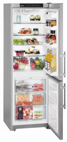 Холодильник Liebherr CNsl 3503 — отдельностоящая модель, которая легко перемещается на новое место установки в случае необходимости. Стальной корпуса — это надежность и стиль. Прямолинейный дизайн в сочетании с серебристым цветом — это элегантное дополнение для любого интерьерного решения. Накладные ручки со встроенными толкателями — еще одно преимущество изделия. Они обеспечивают легкое открытие. Внутреннее оснащение представлено двумя вместительными камерами. Нижнее положение занимает минусовое отделение с классическими тремя ящиками. Верхнее — холодильное с разнообразием держателей, полок и ящиков — всем, что позволяет с комфортом расположить любой продукт. Холодильник Либхер CNsl 3503 не нужно размораживать, так ка он оборудован технологией НоуФрост, благодаря которой внутри не образовывается инея, снега и льда.