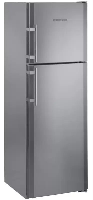 Холодильник Liebherr CTNesf 3663 — отдельно стоящий прибор в корпусе серебристого цвета с двумя дверцами и верхним расположением морозильной камеры. Стальной корпус с покрытием SmartSteel от отпечатков пальцев достигает в высоту 191 см, общий объем составляет 257 литров. Перенавешиваемая дверца и регулируемые ножки позволят без труда установить прибор в выбранном месте. Автоматическое размораживание обеих камер без образования льда на стенках позволяет облегчить уход за прибором. Большая информативная панель управления MagicEye класса Premium расположена за дверцей. Внутреннее наполнение холодильной камеры составляют полки из закаленного стекла с регулировкой по высоте, металлическая подвесная полка для бутылок, ящики для овощей и фруктов. В морозильнике продукты размещаются на двух полках. Производительность замораживания достигает 8 кг в сутки. Система суперзамораживания SuperFrost понизит температуру перед закладкой на хранение новой порции продуктов. Внутреннее освещение холодильной камеры осуществляется при помощи светодиодных колонн.