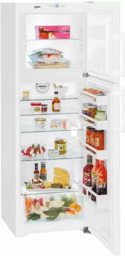 Холодильник Liebherr CTP 3316 Comfort высотой 176 см и шириной 60 см — отличный выбор для кухни любого размера. Верхнее расположение морозильной камеры удобно для людей пожилого возраста. Общий объем 320 литров позволит создать значительный запас продуктов. Стальной корпус в дизайне SwingLine отличают стильные скошенные углы и глянцевый белый фасад. Ручка двери дополнена удобным встроенным толкателем. Электронная панель управления MagicEye класса Comfort располагается за дверцей и содержит кнопки SoftTouch и ЖК-дисплей. Холодильная камера оснащена капельной системой размораживания, требующей минимальных усилий при уходе. Полки из закаленного стекла можно перемещать по высоте. Имеются контейнеры для хранения овощей, отделения для консервов и для бутылок. Морозильное отделение позволяет сохранить продукты в замороженном виде в течение 24 часов после отключения электроэнергии. Функция суперзамораживания SuperFrost с автоматическим отключением поможет снизить температуру в морозильнике, если планируется загрузить туда свежие продукты.