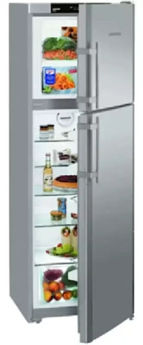 Liebherr CTPesf 3316 Comfort — удобный холодильник цвета нержавеющей стали, вместимость которого составляет 312 литров. Морозильная камера холодильника находится в верхней части. Ее способность к суточной заморозке составляет 6 кг. Холодильный отсек состоит из 5 полок. Преимущество экстерьера модели — это специальная обработка корпуса против отпечатков пальцев.