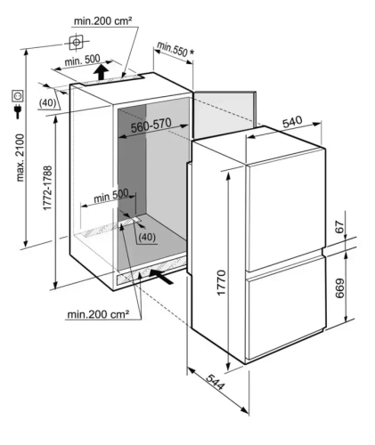 | Габариты ниши для встраивания, ВхШхГ (см) | 177.2-178.8х56-57х55 | |