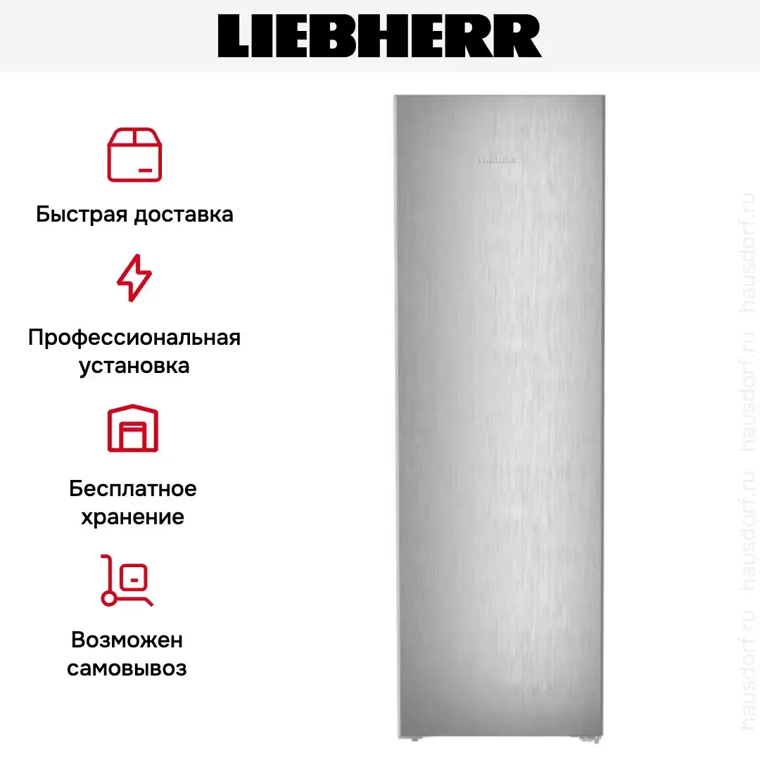 Liebherr RBsfe 5221 — высокий серебристый отдельно стоящий холодильник с одной дверцей, внутри имеется небольшое морозильное отделение и зона свежести BioFresh. Для управления используется большой сенсорный экран в верхней части корпуса. Для легкой очистки предусмотрено автоматическое размораживание. Дверцу при необходимости можно перенавесить.