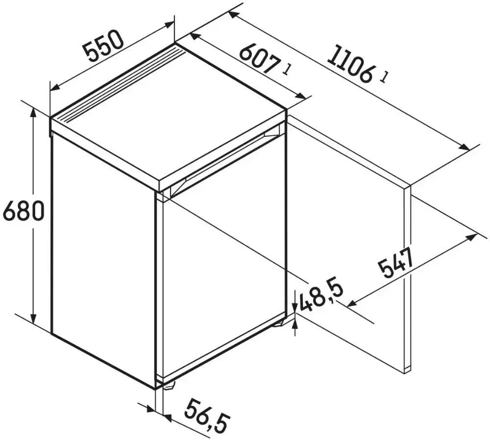 Данная модель — отдельностоящая, поэтому нужно тщательно подобрать место для ее размещения. Благодаря компактным размерам, она подойдет даже маленькой кухне. Вы можете поменять направление открывания двери, так как упор переставляемый и ее можно перевесить на другую сторону. Такая функция открывает больше возможностей для установки. Холодильник без морозильной камеры имеет свои преимущества: больше места для хранения продуктов краткого срока годности, разнообразие полок и ящиков для овощей, фруктов, молочных изделий. Количество камер: 1.