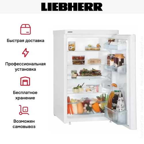 Отдельностоящий холодильник Liebherr T 1400 выполнен в классическом белом цвете. Модель имеет одну камеру, морозилка отсутствует. Три полки можно регулировать по вашему усмотрению. Имеются отдельные отсеки для хранения бутылок, консервов и овощей.