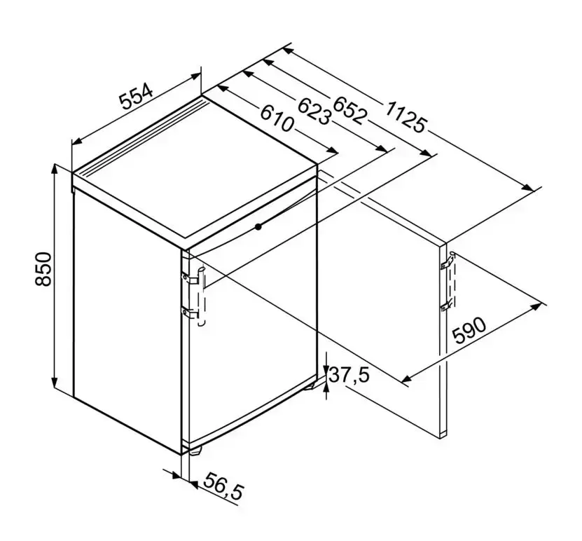 Однокамерный холодильник Liebherr T 1710 Comfort — небольшая модель высотой 85 см и общим объемом 154 литра для размещения под столешницей или вплотную к стене. Верхняя крышка съемная, она может использоваться в качестве стола. Серия SwingLine привлекает внимание стильным дизайном со скошенными углами, глянцевым белым фасадом, удобной ручкой со встроенным толкателем. Дверца с правым дверным упором имеет возможность перенавешивания на другую сторону. Ножки регулируются по высоте. Модель без морозильника оснащена автоматической системой размораживания, которая исключает появление наледи на стенках камеры. Для регулировки температуры служит поворотный переключатель, который позволяет задать уровень охлаждения от 1 до 7. Устройство оснащено термостатом, который обеспечивает поддержание стабильной температуры в камере. Продукты удобно размещаются на четырех полках из закаленного стекла, три полки можно отрегулировать по высоте. Пластиковая рамка дополнительно защищает полки от механического воздействия, ее можно легко снять для очистки.