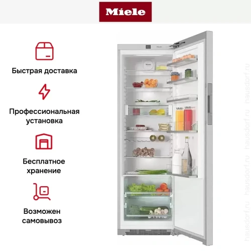 Холодильник Miele KS 28423 D EDST/CLST представляет собой отдельностоящую модель без морозильника. Его габариты составляют 185×60×67.5 см, что делает его достаточно вместительным для хранения большого количества продуктов.